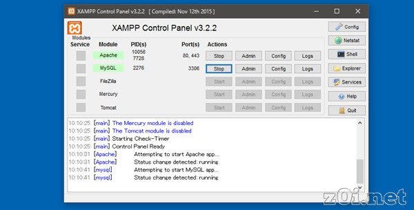 I:\xampp\xampp-control.exe をクリックするとコントロール画面が起動します。
